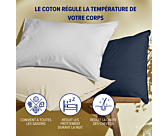 Le coton est reconnu pour durer dans le temps et prendre soin de la peau sans l'irriter. C'est bien pour cela que nos taies d'oreillers en sont intégralement composées. Les fibres du tissu sont filées de façon serrée pour former un fil robuste et vous garantir une bonne ventilation, peu importe la saison.